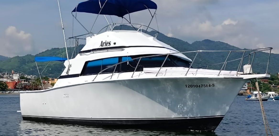 El bote Aries es un bote Bertram de 35 pies, ideal para pesca deportiva menor o pesca de altura.